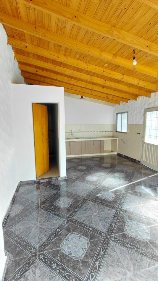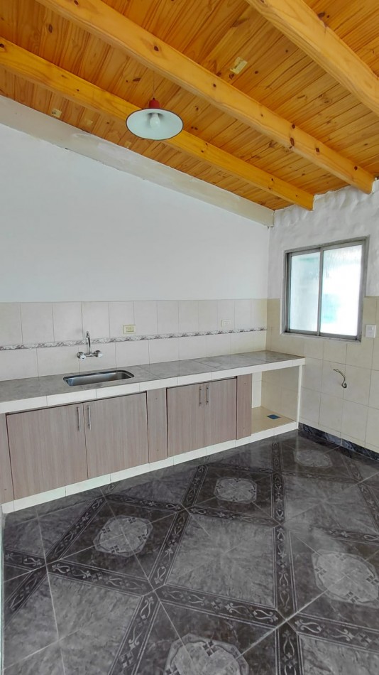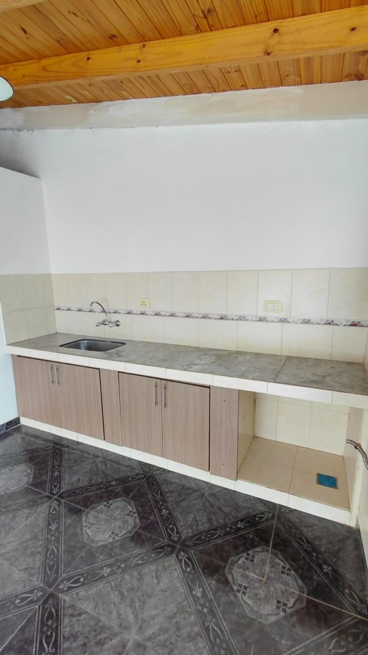 Cocina (sin artefacto de cocina) con muebles bajo mesada, lavadero con conexión para lavarropas.